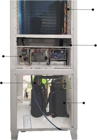 其他品牌低碳空調(diào)水泵軟管鏈接容易脫落,無(wú)止回閥機(jī)組停水無(wú)保護(hù)。